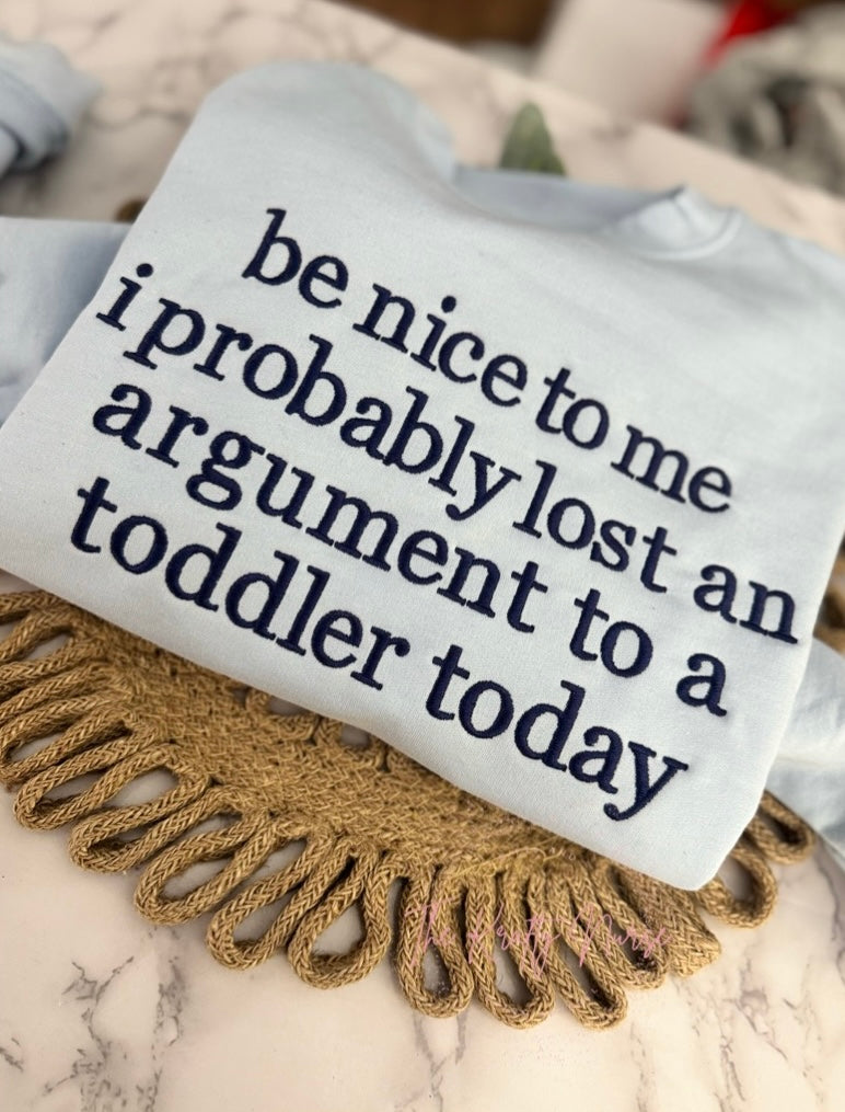 PROBABLY LOST AN ARGUMENT WITH A TODDLER SWEATSHIRT