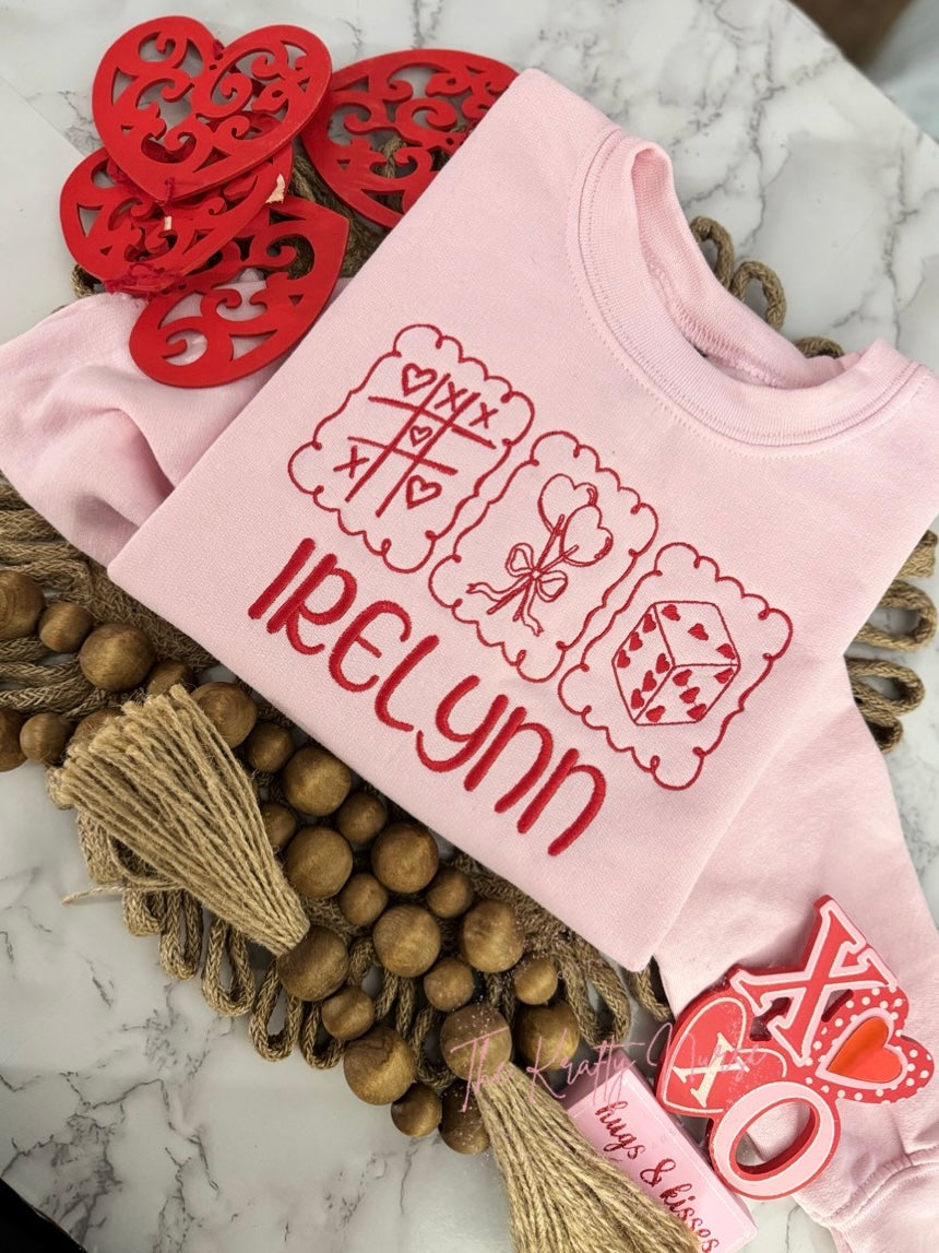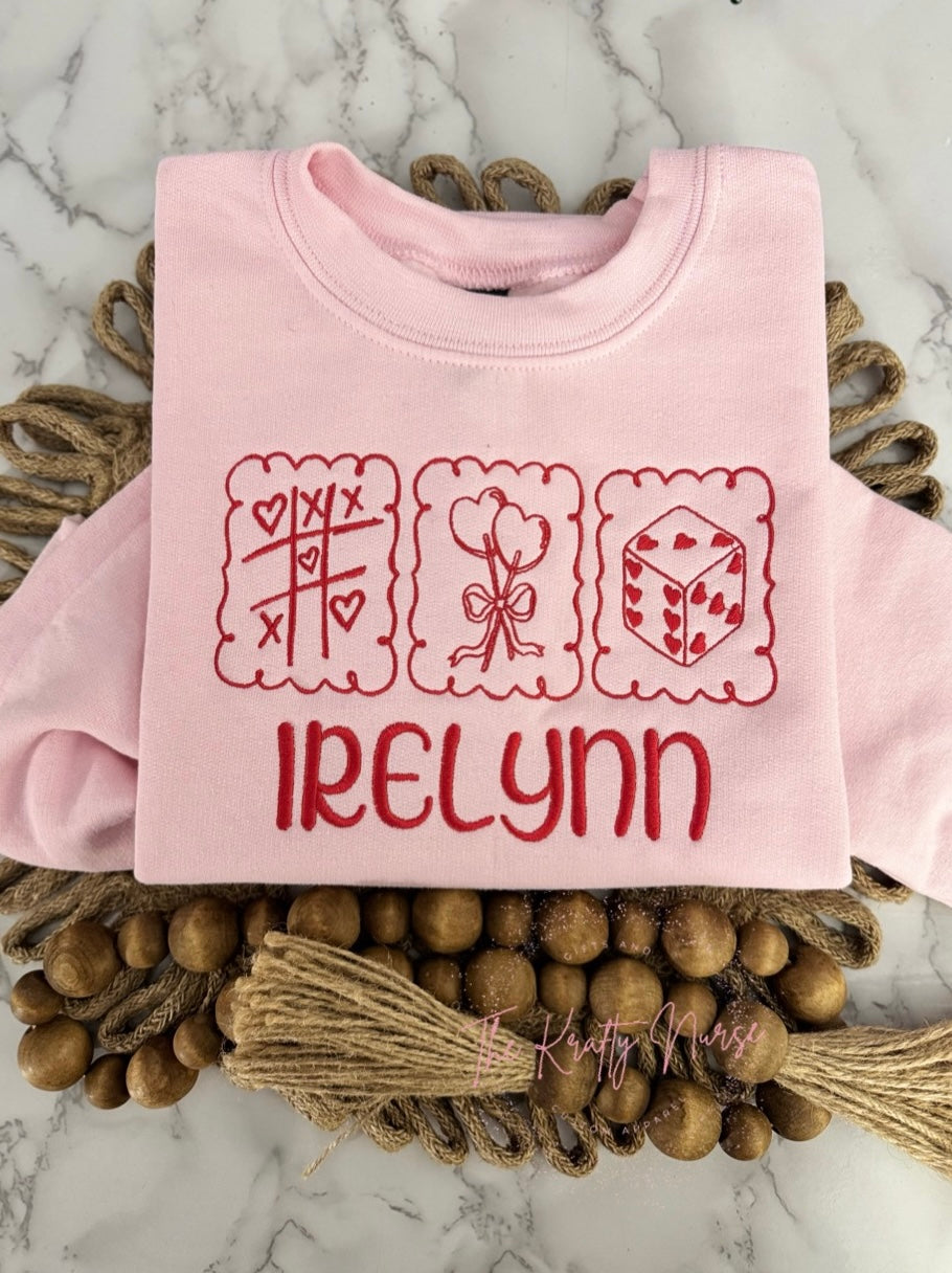 Youth/toddler embroidered valentines stamps sweatshirt, add optional personalization